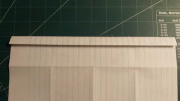 Tire la tapa hacia abajo con cada pliegue 3/4 de pulgada. Para ello estos pliegues del contrapeso hasta el otro lado del doblez de la mitad de longitud.