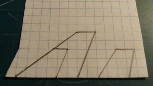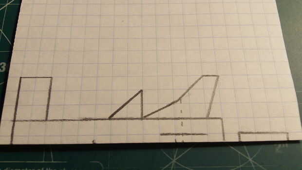 Una vez hecho esto, empezar a hacer las alas y el estabilizador horizontal. La construcción de las alas se debe comenzar por dibujar una línea con una pendiente (barrido) del 5 al 6. A lo largo del borde de ataque, en el punto donde el espesor de las alas alcanza 3 cajas, hacer una línea horizontal que se extiende 1,5 cajas hacia el interior. Entonces conecte su borde el pliegue de papeles. Asegúrese de que la línea que une el extremo del ala para el pliegue pierde una caja de longitud en el alcance. Para hacer que el estabilizador horizontal, marcar 3 cajas que tienen al menos 1 caja de espacio libre detrás de ellos. La pendiente de la vanguardia debe ser 3/2 y el borde de fuga 3/1.