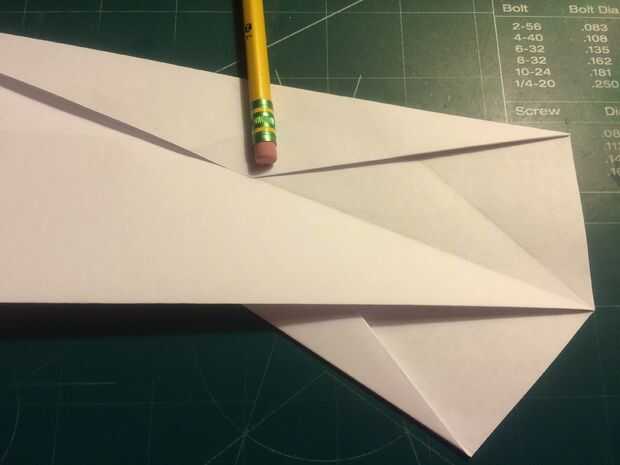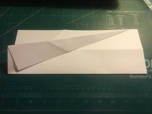Tomar su papel y dóblela a lo largo de su longitud. Después de hacer esto, doblar los bordes del papel en el pliegue de centro que haya realizado. Una vez finalizado esto, tire de las esquinas y doblar sus pliegues en el centro. Desdoblar el papel, luego doblar los bordes en los pliegues que ha hecho con los pliegues anteriores. Después de hacer esto, doblar las esquinas del papel hacia abajo en cada lado, como se muestra. Después de esto, doble los pliegues los pliegues hacia abajo sobre la parte superior de los mismos. Continúe plegar el papel a lo largo de los pliegues hasta que su papel coincide con la última fotografía para crear las superficies de sustentación.