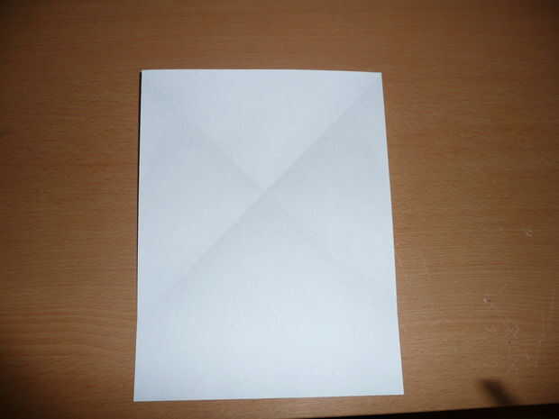 ok, ahora necesitas doblar una de las esquinas superiores. A continuación, desplegarlo y doblar la otra esquina. Cuando se despliegan el papel, debe tener una X de las líneas de doblez en el papel.