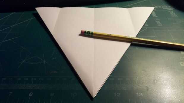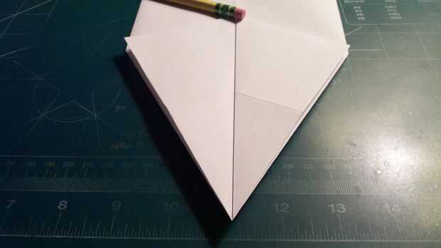 Doble las alas hacia abajo, alineando los pliegues cuarto con el pliegue del centro. Después de esto, doble los extremos hacia adentro los pliegues cuarto. Después de esto, cinta que dirigió.