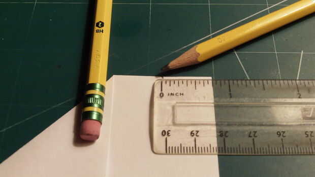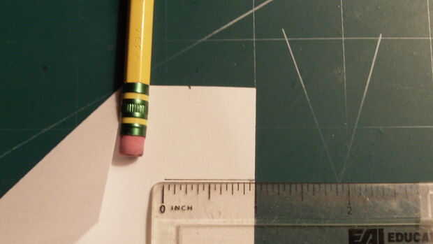 Medir 0,75 pulgadas desde el borde de fuga a lo largo de la punta del ala y haga una marca. Mide 1 pulgada en desde la punta del ala a lo largo del borde posterior y haga una marca. De esta marca, medida y hacer un 1 pulgada línea hacia el interior de la marca que hizo a lo largo del borde posterior. Una vez que esta línea, conecte su borde con la marca en la punta del ala. Proceder a cortar a lo largo de esta línea.