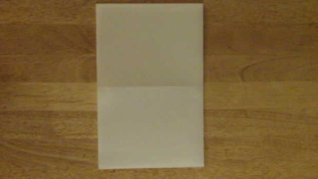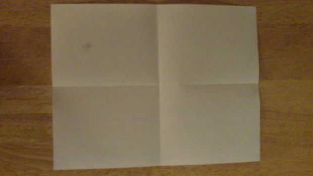 Tomar su papel y doblarlo por la mitad de lo largo. Abierto. Luego doble el papel ancho. Abierto.