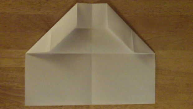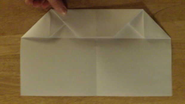 Ahora pliegue longitudinal, un borde del papel hasta el centro. Continuación, abra copia de seguridad. Ahora doblar las esquinas al redil. Repita doblando la esquina hacia abajo sobre el doblez anterior. Entonces después de doble la parte superior hacia abajo a lo largo de la cuarta división del papel. Después de esto, lo que era sólo la parte superior del papel debe ahora estar tocando el centro del papel.