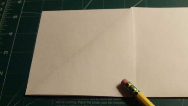 Tomar su papel y dóblela a lo largo de su longitud. Luego tire de las esquinas y doblez en el centro. Entonces voltee el papel y tire los pliegues de los dobleces de esquina hacia adentro.