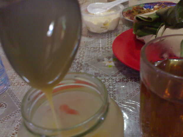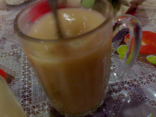 Obtener alguna crema azucarada. Poner en el vaso de té. La cantidad depende de usted. Si te gusta que sea más dulce, a continuación, añadir más crema. Si no quieres que sea dulce, sólo tiene que utilizar un poco. Yo uso una cucharada. Agitar firmemente.