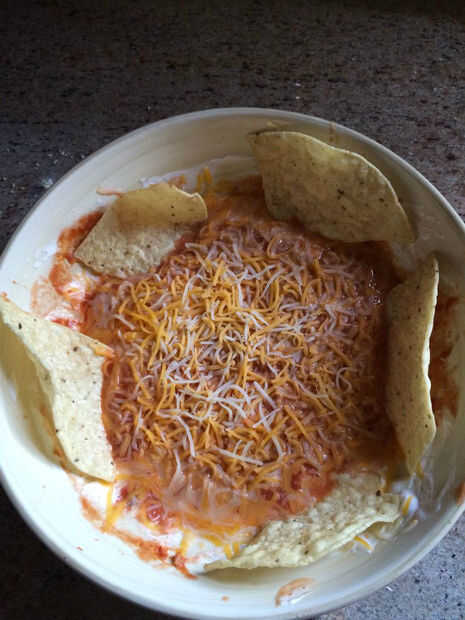 Agregar chips de tortilla a la inmersión por lo que ya está listo para servir enseguida.