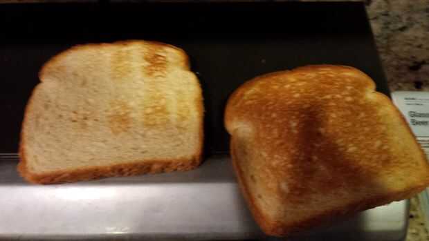 El primer paso es tostar el pan. Si su tostador es como la mina un lado es más fuerte que el otro. Esto funciona perfectamente. Quieres más uno para sujetar que el jamón y el menos uno para sujetar el queso tostado tostado. Si no tienes ningún horno tostador tostadora regular funciona.