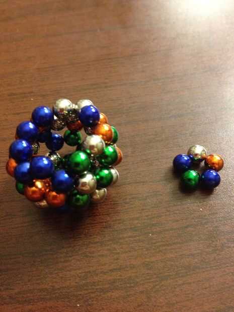 Paso 1: hexágonos 18 buckyballs y envuélvalas alrededor en un hexágono. Vas a hacer 3 de estos.Paso 2: Más hexágonos 19 buckyballs y envuélvalas alrededor en un hexágono para que el orificio del medio se llena. Vas a hacer 3 de estos también.Paso 3: