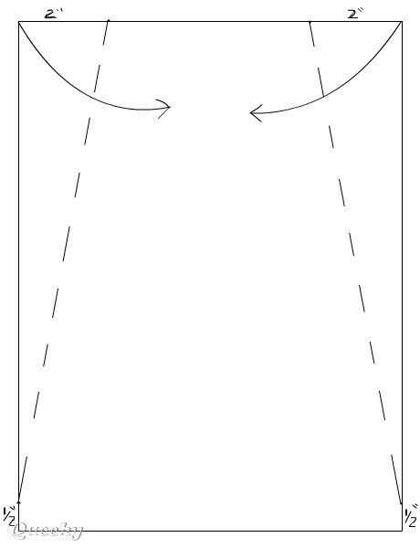 Hacer una marca de 2" de cada lado en la parte superior del papel y haga dos marcas más 1/2" por encima del borde inferior del papel a cada lado.