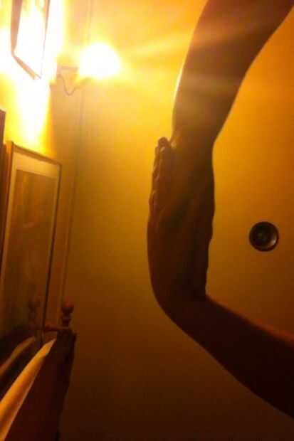 Juntar ambas manos y puso su dedo meñique entre el dedo pulgar y el dedo