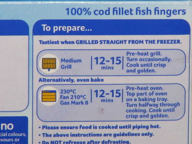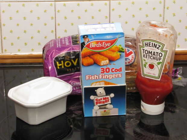 Buenos ingredientes son esenciales para un gran producto final. Los dedos de pescado debe decir 100% filete, que significa que están hechas de cortes adecuados de peces. Si le dicen 'picada', 'reformado' o (el pensamiento se pierda) 'separada mecánicamente', es un producto de calidad inferior. La mayoría son bacalao, pero también hay merluza y abadejo. Necesitarás cinco dedos de pescado por sándwich.