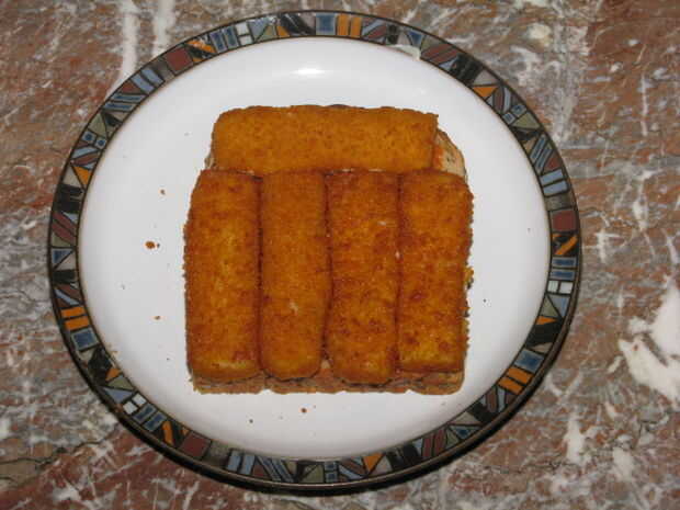 Hay solamente una forma correcta de colocar los dedos de pescado. Otra cosa es la herejía, abominable y antinatural. Organizar cuatro dedos verticalmente y luego la quinta en la parte superior. Si vas a ser creativos (véase abajo) ahora es el momento de añadir los extras. Para la presentación de clase realmente superior, decorar con una ramita de perejil recién cogida.