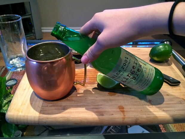 -Rematar con cerca de 4 onzas de cerveza de jengibre y poco más de hielo.
