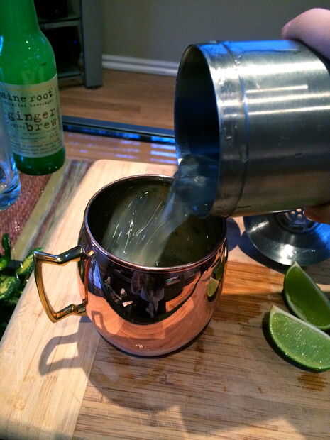-Vierta todos los ingredientes (sacudidos) en taza de cobre.