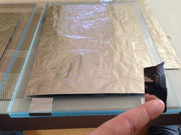 materiales necesariosPaso 1: 1. aislador de corte dos aislantes de plástico13 x 4 enPaso 2: 2 marca Coloque una hoja sobre el vidrio de la referencia y cinta adhesivaPaso 3: corte de 3 de la cinta Al corte de cinta del dos y 2 placa más para los term