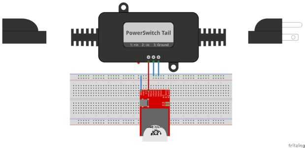 Usé el PowerSwitch para cola II para el control de la alimentación de la lámpara de escritorio con el IMP eléctrico. Se trata de un práctico relé que permite controlar un suministro de energía de 120V de un tomacorriente de pared muy fácil.