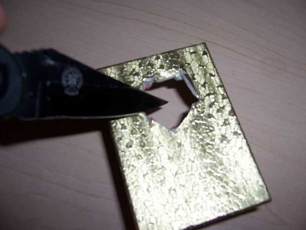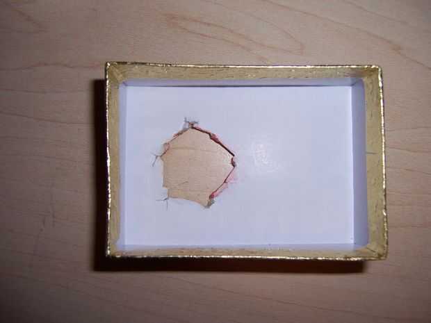 Retire la tapa y la espuma de la caja. Corte un orificio en la parte inferior (a un lado o el otro) de la caja un poco más grande que el dedo índice (no corte su dedo).