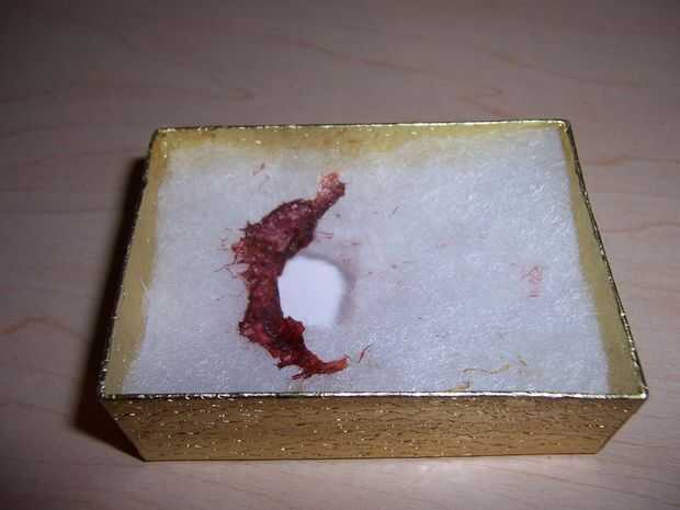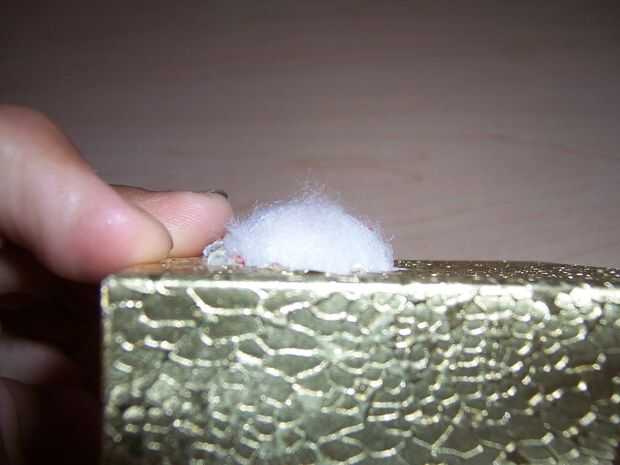 Reemplazar espuma en caja. Empuje la pulgar en la espuma que se pega fuera del agujero previamente cortada de dedo y corte a la espuma que sobresale (es una buena idea cortar el pulgar o no).