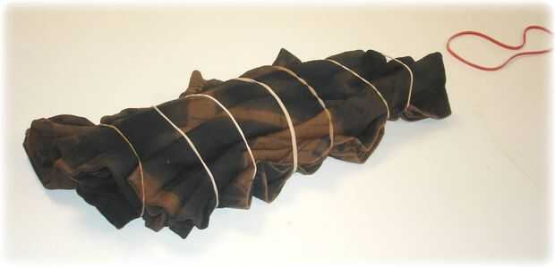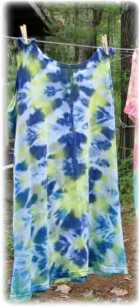Usted debe obtener un patrón similar para el diseño de la "flecha", dependiendo de la camisa y lo bien ha sido capaces de doblar los espesores. Vale la pena intentarlo. También puede utilizar este doblez para hacer un tinte del lazo! Funciona muy bien con negro y rojo, o negro y verde! La imagen que se muestra es de una tapa del tanque sin mangas que doblé en este patrón en azul y amarillo.