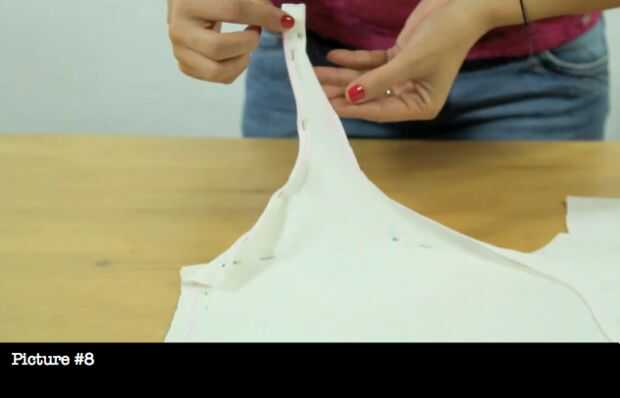 Mira como realizar el dobladillo en las tiras y cuello, haz lo mismo con los alfileres.