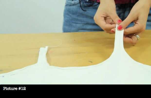 después de terminar esa parte, cose los tirantes a ambos lados del vestido.
