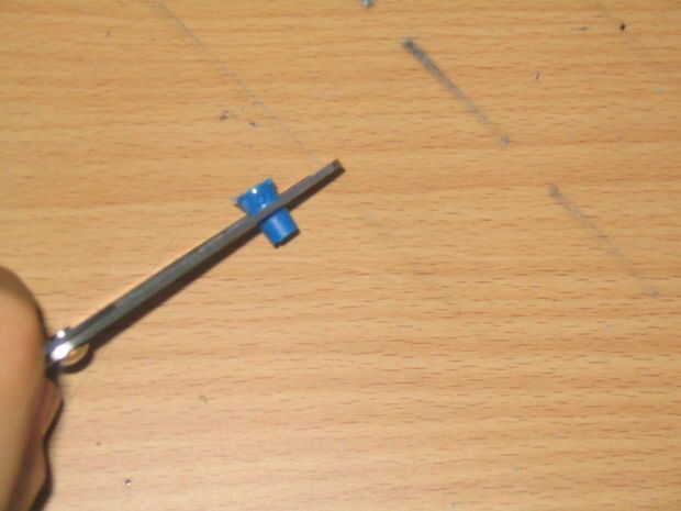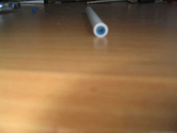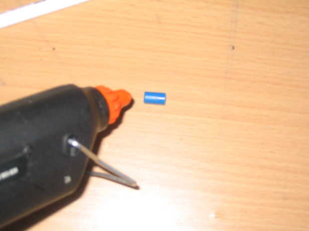 4. pegamento caliente la punta del conector azul que puede caber dentro del tubo pluma. (empuje todo esto es dentro del tubo. sólo en un extremo. El cuadro siguiente mostrará lo que quiero decir.)