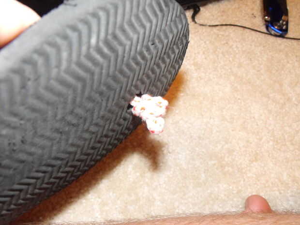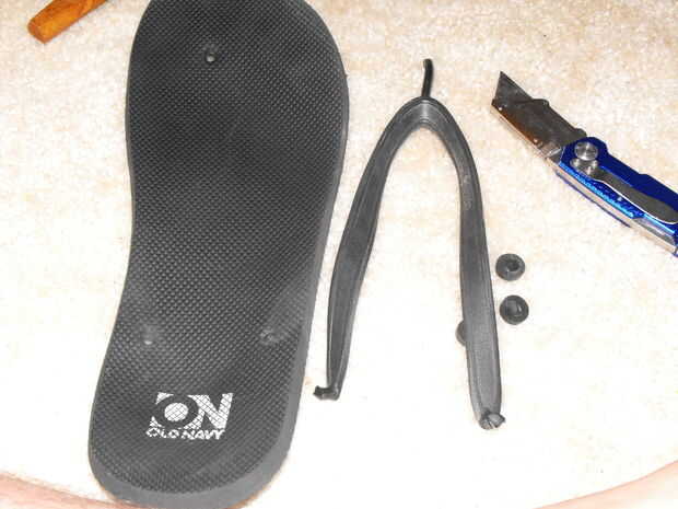 una espuma inofensiva cuchillo de lucha contra el juego, como lo uso para, una última mano de pie o arma de airsoft.Se necesita:1 SANDALIA flip-flop de espuma (tengo un par para un buck en Old Navy) Asegúrese de que esté lo suficientemente grande par