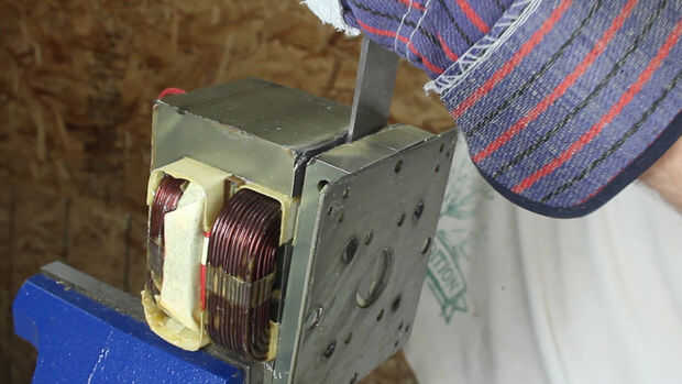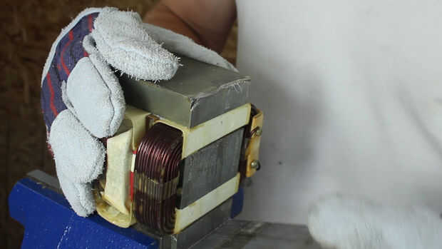 Una sierra o amoladora angular puede usarse para cortar la soldadura, luego un martillo y el cincel utilizado para romper abierto, dando acceso a las bobinas primarias y secundarias.