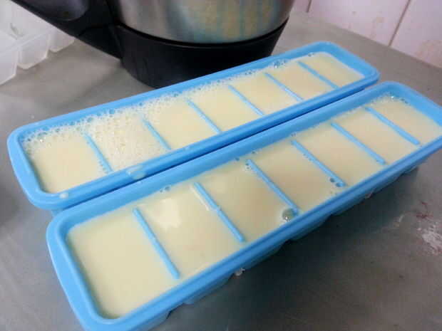 ¤Pour la mezcla en hielo bandejas del cubo y congelarlo.