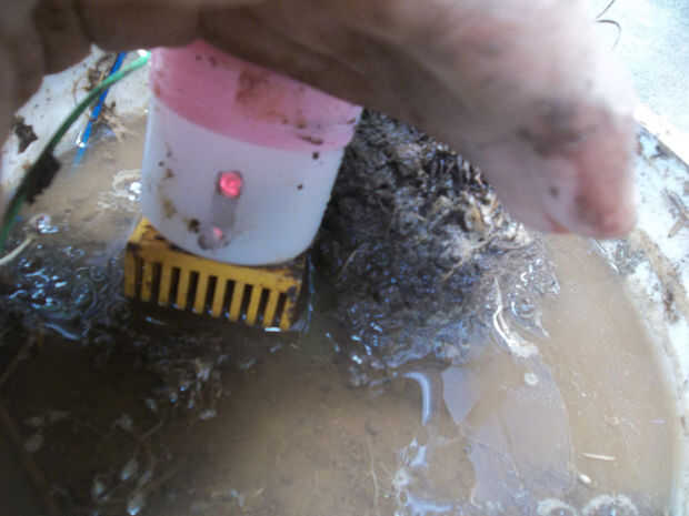 Y he aquí! Un pastorcillo de Playmobil visto el nivel del agua en nuestro árbol de Navidad están por la noche. Cuando hay suficiente agua, su linterna verde. Cuando hay muy poco, su linterna se ilumina en roja. Pero esperar. Tu mente ha pasado en otr