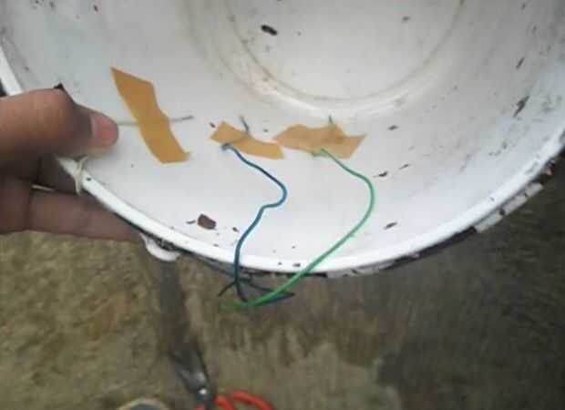 Pegue los cables del indicador de agua en cubo con pegamento, pegamento estupendo, o simplemente la cinta con cinta adhesiva.