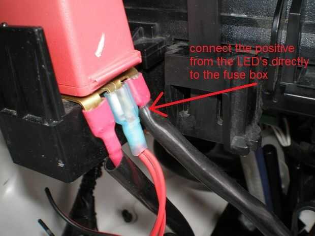 He conectado el positivo de mi LED a la caja de fusibles. En este punto mi LED de vamos.