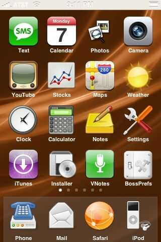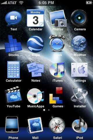 Champster ha añadido su tema personal, para instalar vaya a WinSCP e ir a /library/themes y arrastre en el tema (después de descomprimirlo), luego activar en winterboard. Y si quieres antes de subir al ipod en el .plist puede cambiar los valores tales como cambio de negro a blanco a los iconos del dock tienen texto blanco en lugar de negro. también puede quitar el wallpaper.png o lockbackround.png para deshacerse de la SB wallpaper ot el fondo de pantalla de lockscreen. su todo personalizable.