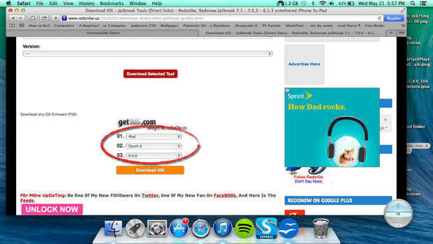 Allí son tres categorías rellena. El iDevice, el modelo y la versión IOS. Rellene la ranura primera con cualquier dispositivo tienes. Llenar la ranura siguiente con su modelo de iPod (iPad o iPhone). La última ranura es la que no esperas. DEBE poner en IOS 6.0.0 no importa qué versión de IOS ACTULY tener. Cuando esto esté hecho, haz clic en el botón Descargar y esperar.