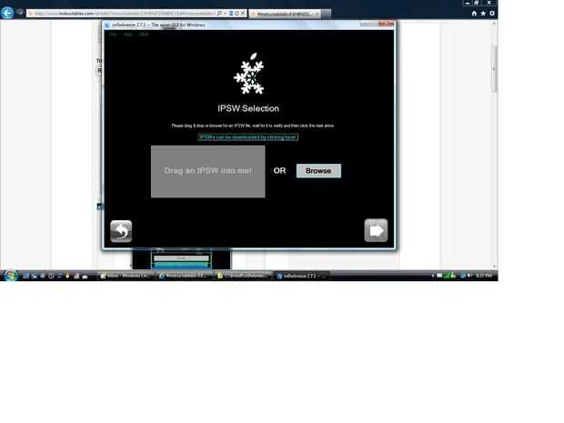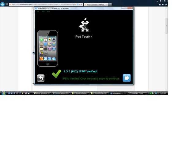 La siguiente pantalla debe ser una pantalla de selección de IPSW. Haga clic en "Examinar", luego vaya a la carpeta de datos de la aplicación. Dentro de esa carpeta (en Windows XP) debe ser una carpeta llamada Apple o Apple Computer. Abrir esa carpeta, luego ir a iTunes, abra actualizaciones de Software de iPod, luego seleccionar el archivo .ipsw, luego haga click en "Abrir". En Windows Vista y 7, navegar a la carpeta datos de aplicación, luego abra la carpeta Roaming, luego abra la carpeta Apple Computer, luego abra la carpeta de iTunes, luego abra la carpeta de actualizaciones de Software de iPod, entonces seleccione el archivo ipsw y haga click en "Abrir". Después de todo esto, la pantalla dirá "Identificación IPSW..". Después de eso, debe dar una "pantalla de Verified IPSW. Haga clic en siguiente.