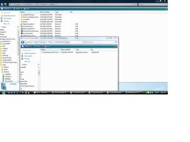 2. a. (en Vista/7) C:\Users\*Username*\AppData\Roaming\Apple Computer\iTunes\iPod Software actualizaciones