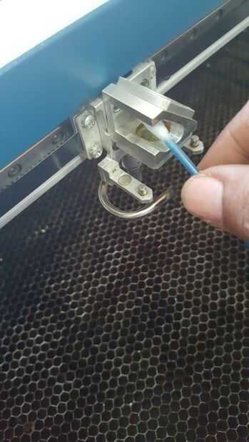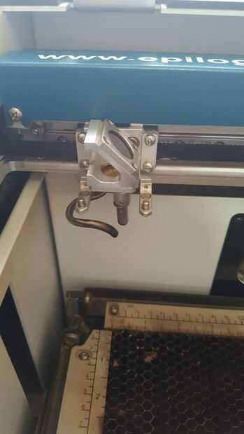 Como pueden ver la pieza del lente consiste en una pieza de 2 lentes, un lente el cual refleja el rayo hacia la mesa y un lente el cual enfoca el láser en el área de corte.
