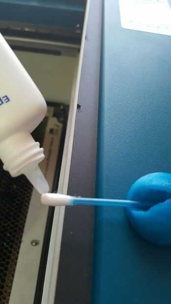 2 Se humedece un hisopo o cotonete con el liquido de limpieza de la epilog.