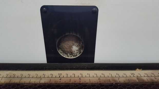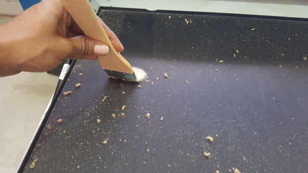 4. Se procede a remover todo los desperdicios de la bandeja, tambien se puede usar aire para remover cualquier particula de polvo sea dificil de alcanzar.