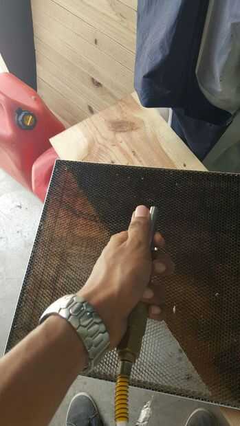 2 procedemos a limpiar toda la mesa de trabajo con aire a presión.
