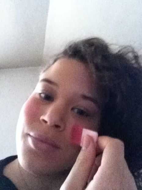 A veces el rubor es más oscuro que me gustaría, por lo que sólo Limpie los bordes con mi dedo para mezclar en mi fundación.