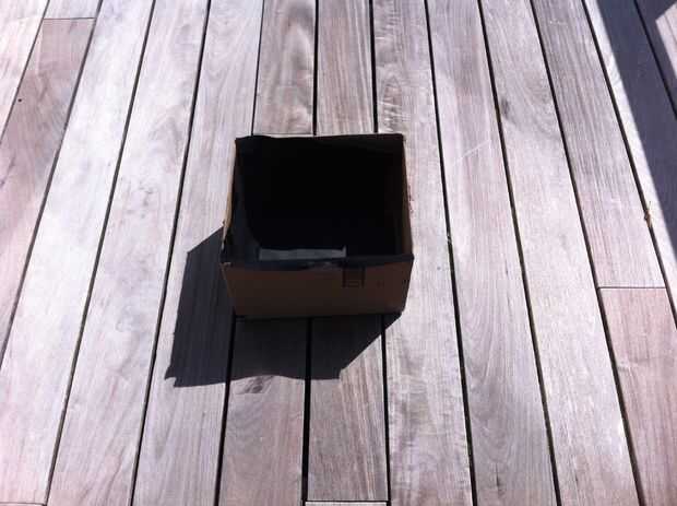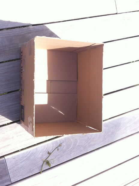 Tome la caja más pequeña y cortar las "aletas" alrededor de él. Luego cubrir el interior totalmente en el papel negro. De esa manera la luz del sol será absorbida. El papel de la cinta hacia abajo y apartar la caja. Utiliza papel negro en lugar de pintura en aerosol porque no sería buena para cocinar cualquier alimento en la pintura.