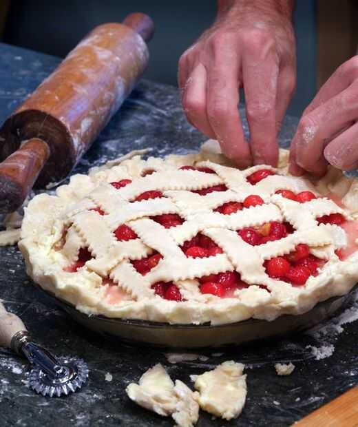 Combinar las cerezas, el azúcar y la maicena y revolver. Vierta la mezcla en la tarta, poner su enrejado sobre esto y pellizcar los bordes para formar un atractivo borde. Hornee a 425 grados durante 15 minutos, luego reducir la temperatura a 350 y conintue hornear por una hora o hasta que el relleno es espeso y burbujeante. Entrega hasta que se haya enfriado un poco! Servir con helado de vainilla.