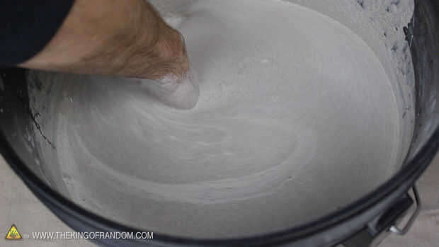 Después de mezclar un par de minutos, debe ser bastante líquida y más o menos las mismas de color. Cuando estás convencido no hay codigo postal cualquier montones de polvo en el balde, la mezcla refractaria está lista para verter.