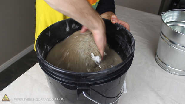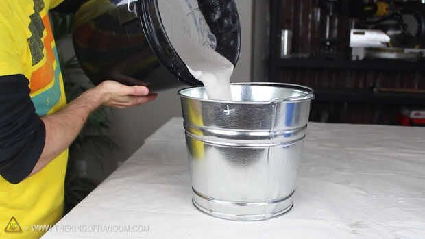 Cuidadosamente la transferencia al cubo acero tan lentamente como sea posible minimizar las salpicaduras. Debería haber sólo suficiente líquido para llenar el cubo de 3" de la parte superior. Ahora devolver el cubo plástico de la medición y se usa para formar el centro de la fundición.