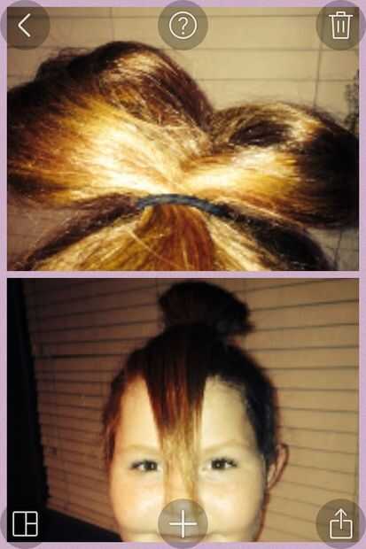 Envuelva su cabello con el potro una vez y luego dos veces y en la tercera, hacer un bollo como mover. mover el exceso de pelo en el centro de su frente. Esto puede parecer confuso, pero usted conseguirá. a continuación dividir el pan completamente a la mitad. Estás cerca del palo final con él!