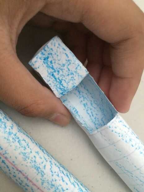 Corte una raja, luego conseguir papel y cortarlo en 6 líneas