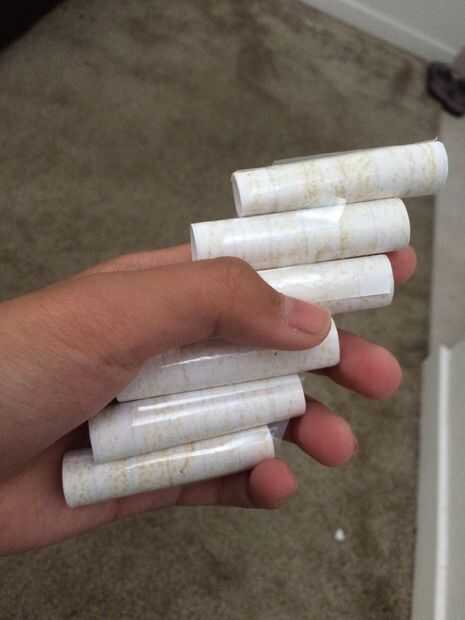 Rodar las balas pequeñas y con cinta adhesiva. Conseguir otro pedazo de papel y rodar el largo camino y apretados. Únalos con cinta adhesiva todas las balas y cinta. Había grabado mi fantasía de mango.