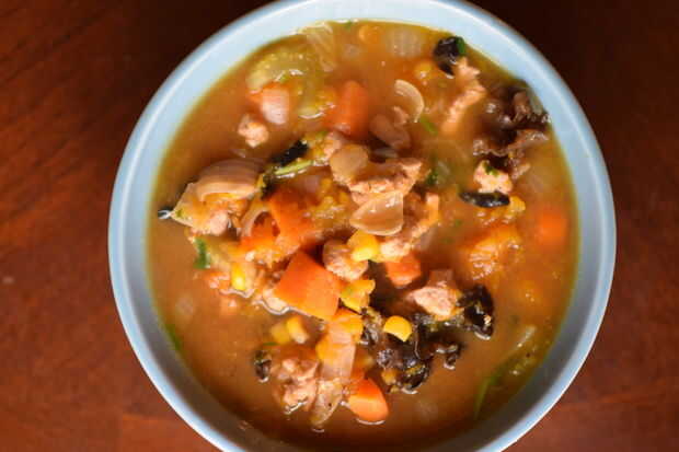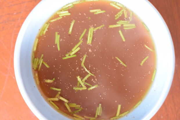 Ingredientes extras: jengibre fresco, hongos frescos o secos, salsa de pescado, ajo. Los primeros son necesidad. El resto de los ingredientes es para hacer un caldo de hueso con color rico, maravilloso sabor y olor. Sólo hueso y piel hace un caldo blanco, insípido con olor algo carnoso, después se enfría para formar gelatina, puede ser condimentado con especias y salsa picante (última foto se muestra).